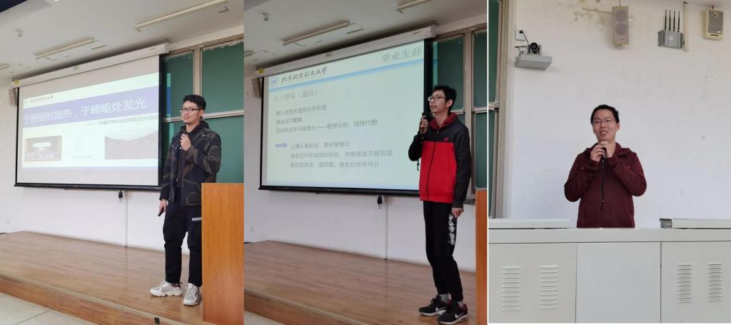 作为北航大学生科协项目部部长,化学学院学生会主席,高家楠同学以别具一格的开场吸引了所有人的注意。虽然拥有着GPA3.73和综合排名4/30的好成绩,但他在大一时却并不出众,在迷茫中他曾努力找寻着方向:分清优劣学科、自主完成作业、参加多项活动并取得名次,以及当学弟学妹们的答疑员完善自己的不足。凭借着筚路蓝缕式的努力,他一步步走到了今天,拿到了中科院理化所保研的资格。也正是这种“敢于闯出一片天”的精神,让在场的我们获益匪浅。他告诉我们四句话:要学会找到志同道合的朋友;深化内容以克服虚无;尽早做出决断及时止损;成为一个自己远比好学生重要。