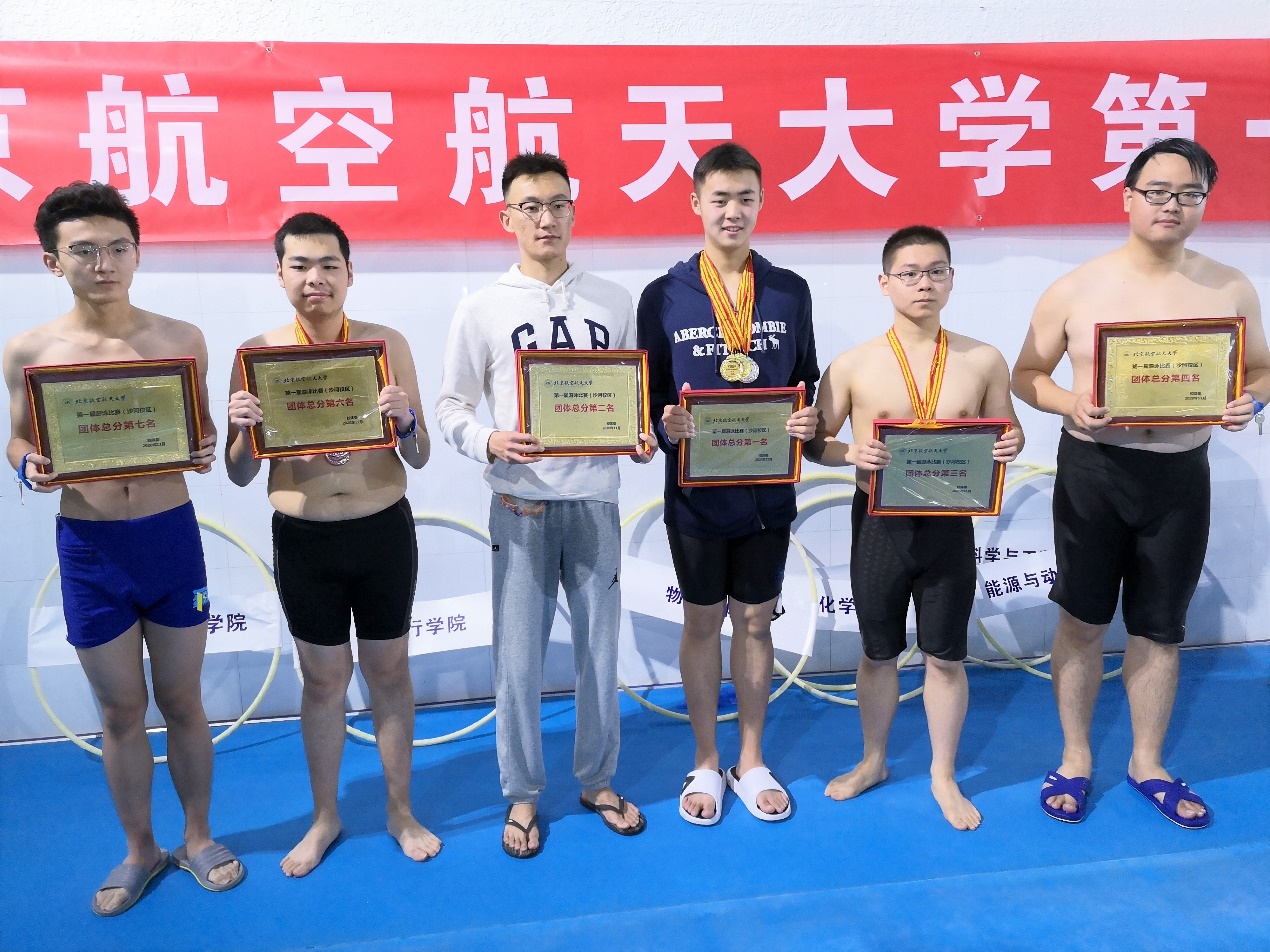 化学学院作为一支优秀的队伍,在本次比赛中共斩获7枚金牌5枚银牌,并获得团体总分第二名、男子团体总分第二名、女子团体总分第四名、最佳组织奖和道德风尚奖!李景辉夺得男子50m蛙泳冠军,谢宇靖夺得男子50m自由泳冠军,张惠莹夺得女子100米自由泳冠军,夏骁培夺得男子100米自由泳亚军。李景辉、谢宇靖、郭肇旌、刘啸尘四名同学夺得4×50m蛙泳接力赛冠军,李景辉、谢宇靖、刘啸尘、夏骁培四名同学夺得4×50m自由泳接力赛亚军。化院学子在本次比赛中奋勇拼搏,展现出化院学子在竞技体育赛场中卓越的风采!