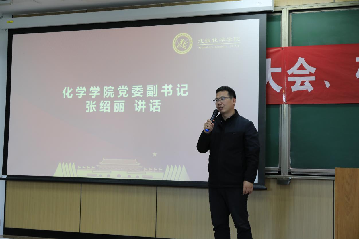 最后,化学学院党委副书记张绍丽老师进行总结发言。他首先对各位主席团成员和部长表达了热烈的祝贺,充分肯定了学生会和研究生会一年来工作取得的成果,并对与会代表及学院所有学生提出希望:一是坚定理想信念,勇担时代责任;二是践行团结拼搏,刻苦学习科研;三是发扬优良传统,认真履职尽责。作为新时代的北航青年,大家要传承好北航人担当实干的精神特质,脚踏实地、埋头实干,争做实学实干的“行动派”。